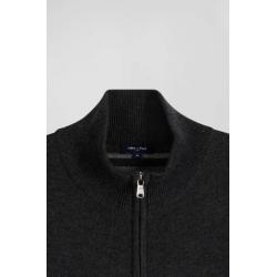 Cardigan zippé en laine et coton uni