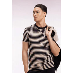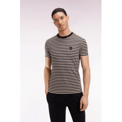 EDEN PARK - T-shirt à manches courtes en jersey de coton rayé marine et marron