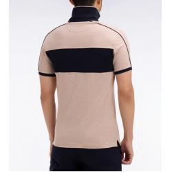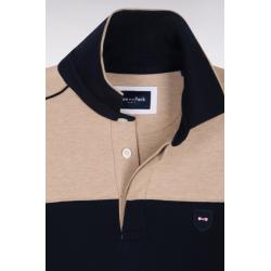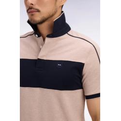 Polo marine et beige à manches courtes en coton stretch coupe slim